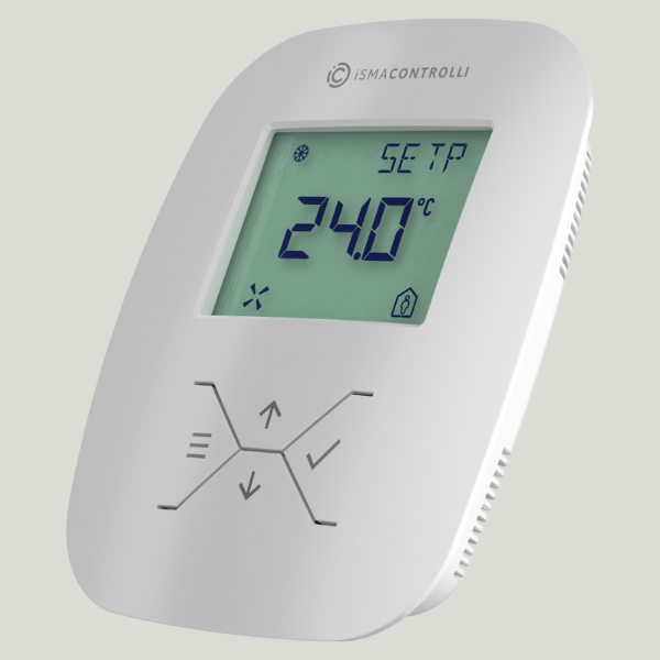 iSMA-B-LP-1 is powered with 24 V AC/DC and has the built-in  RS485 port (Modbus RTU/ASCII). Use of open communication protocol allows to connect the room unit with any controller supports Modbus RTU/ASCII. Together with iSMA-B-FCU controller, the room unit allows to change the basic parameters such as: temperature setpoint, fan speed, FCU mode and others.