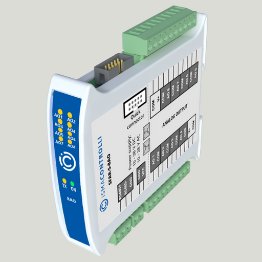 SFARAbout the product SFAR-S-8AO has 8x AO (Analog Outputs). Analog Outputs can work as 0-10 V DC or 0-20 mA output with 12-bit DAC support. All output...