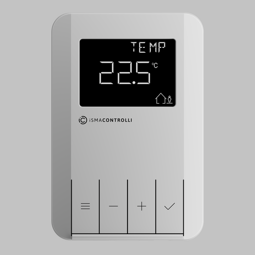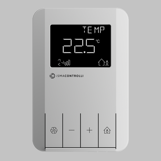 iSMAControl Point wall panel with 2,6" LCD display, buttons for fan control, occupancy and temperature setpoint. Built-in temperature sensor humidit...