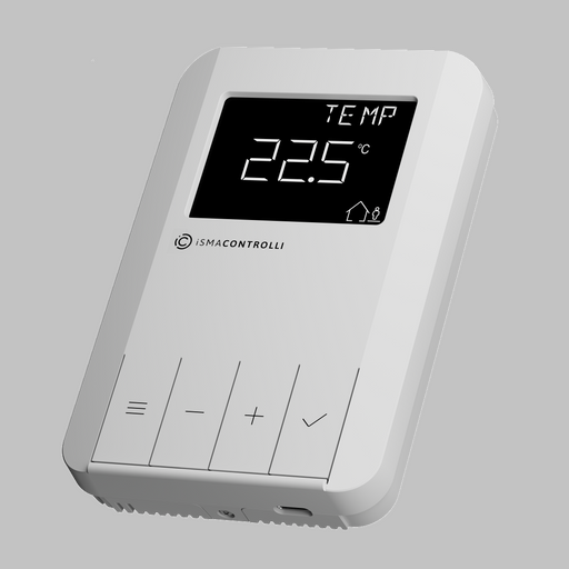 iSMAControl Point wall panel with 2,6" LCD display, buttons for navigation and temperature setpoint. Built-in temperature sensor. Communication Modbus ...