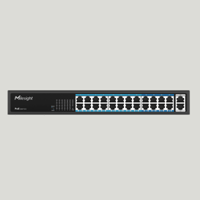 Milesight PoE Switch Series offers flexible options for various applications with 4 to 24 PoE ports and 2 SFP ports. It recognizes power-receiving devices, provides power and transmits data over one Ethernet cable to simplify network deployment in remote areas without power outlets.